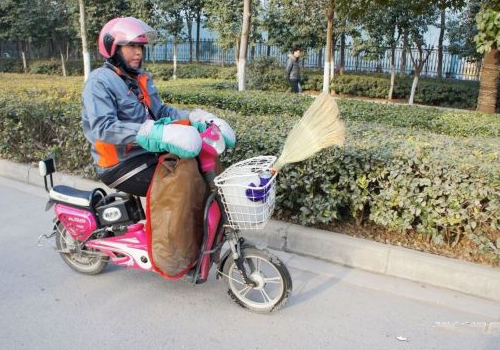 清晨6時50分,夜色還未褪去,一輛小型電動車緩緩駛向阜師院新校區(qū)公共自行車站點,騎車的人是阜陽市公共自行車管理中心的巡檢員李莉,今年38歲。她的主要工作,是每天奔波于雙清路、二道河路、清河西路三條路段14個站點,因此電動車成了她最快捷的交通工具,車筐里還放置著一塊抹布、一罐水桶和一把小笤帚。“巡檢員的工作就是每天檢查站點的車輛、設備和保潔,并配合完成調度工作”。與記者簡單地認識后,李莉開始了一天的工作。