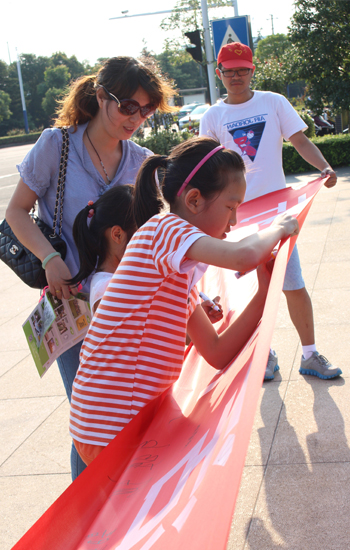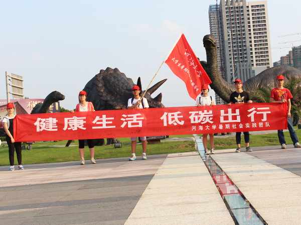 當(dāng)日下午3時,實踐小隊騎著由永安公司提供的綠色公共自行車從河海大學(xué)北門出發(fā),途經(jīng)紫荊公園、中華恐龍園、新北萬達(dá)廣場。期間實踐小隊,進(jìn)行了發(fā)放宣傳單、百人簽名等活動,截止晚上8點,活動圓滿結(jié)束。