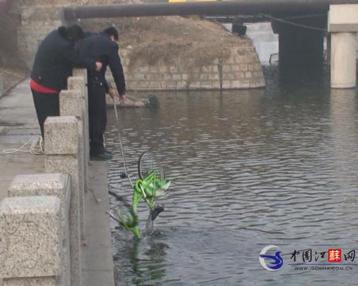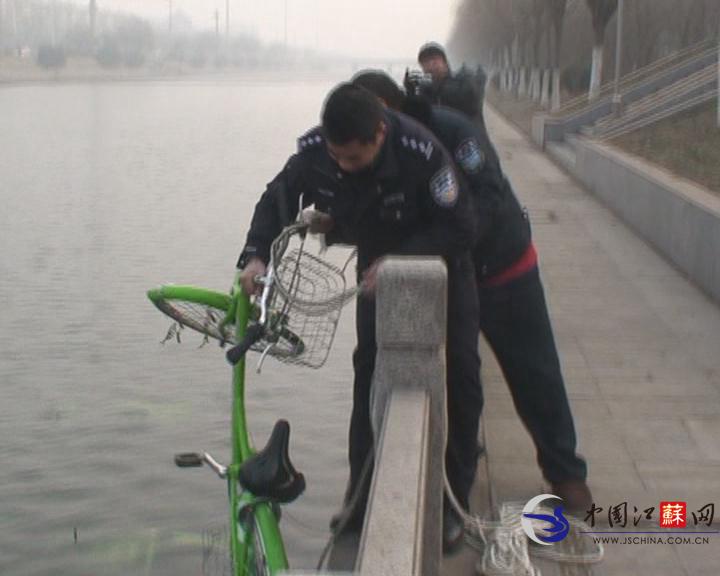 昨天9點多鐘,有市民在徐州市三環(huán)西路故黃河邊散步的時候,發(fā)現(xiàn)河道內(nèi)有4輛公共自行車,被人丟在河道里,于是報了警。