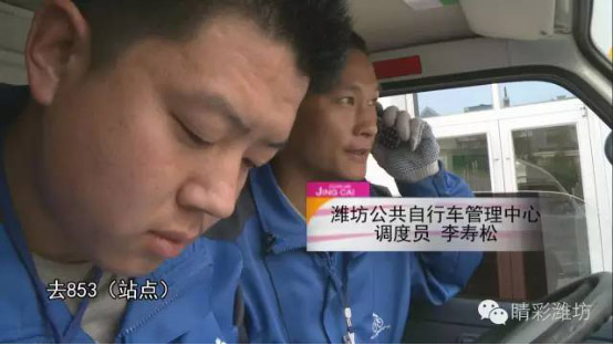 濰坊公共自行車管理中心共有30輛調(diào)度車,早上6點(diǎn)40分,調(diào)度車同時(shí)出發(fā),去往市區(qū)不同站點(diǎn),李壽松的搭檔是比自己小20歲的李臣浩。