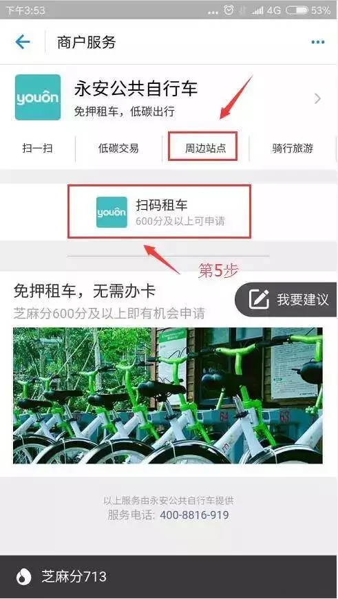 4、永安公共自行車,就是我們現(xiàn)在在用的公共自行車,相比于傳統(tǒng)的刷卡租車,用支付寶掃碼,可以看到多了很多功能。
