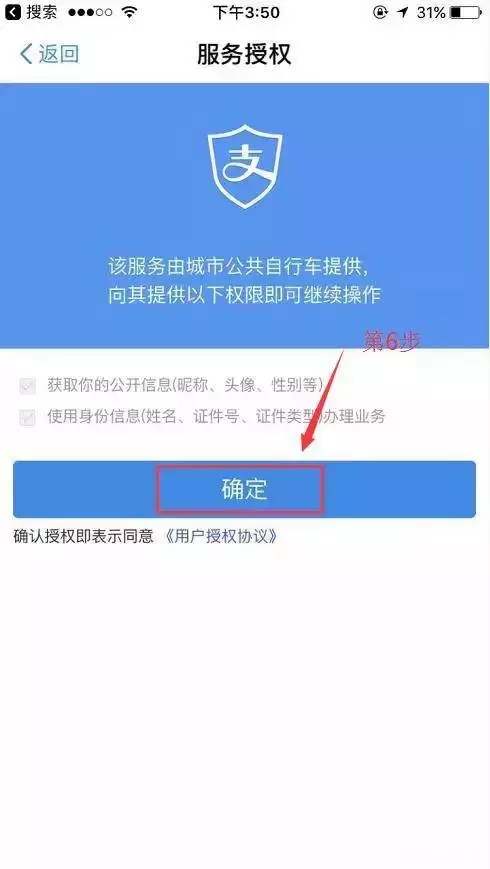 6、因?yàn)槭鞘状问褂茫?strong style="box-sizing: border-box !important; padding-bottom: 0px; margin: 0px; padding-left: 0px; padding-right: 0px; max-width: 100%; word-wrap: break-word !important; padding-top: 0px">會(huì)出現(xiàn)一個(gè)授權(quán)服務(wù),要求公開一定的個(gè)人信息,以及使用身份信息辦理這項(xiàng)業(yè)務(wù)。如果沒問題,點(diǎn)擊“確定”就好。