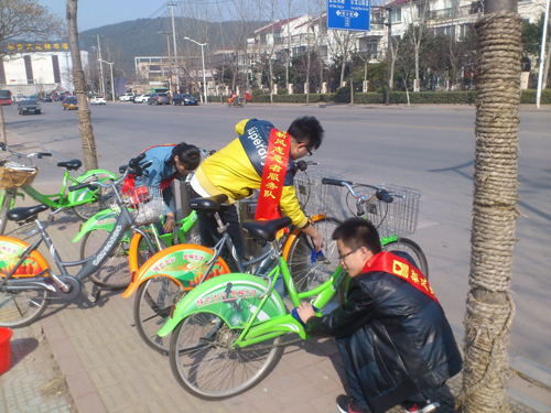 信電學(xué)院11級22班在徐州市新風(fēng)志愿者服務(wù)總隊礦大南湖中隊指導(dǎo)下開展了“徐州市公共自行車維護綠色行”志愿服務(wù)活動,彰顯了同學(xué)們的綠色中國夢想。